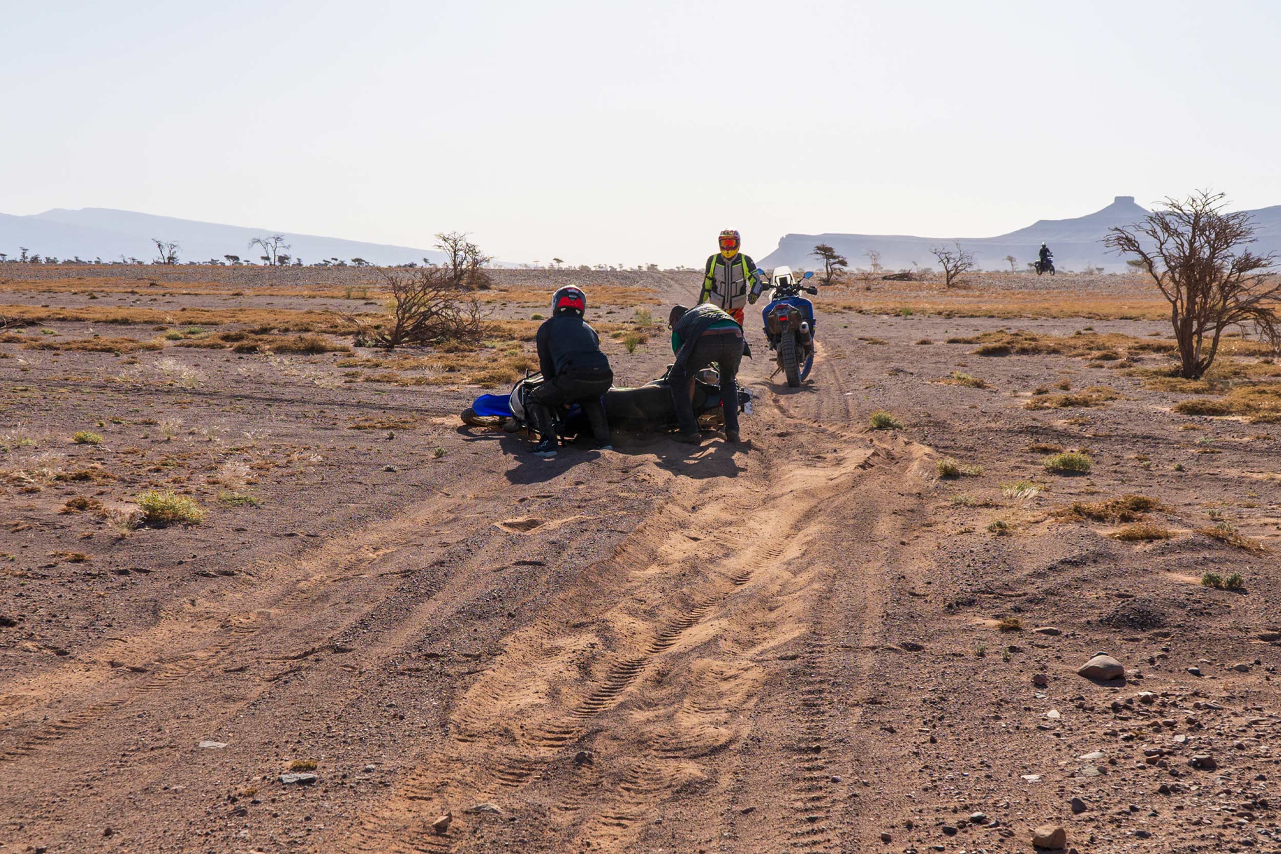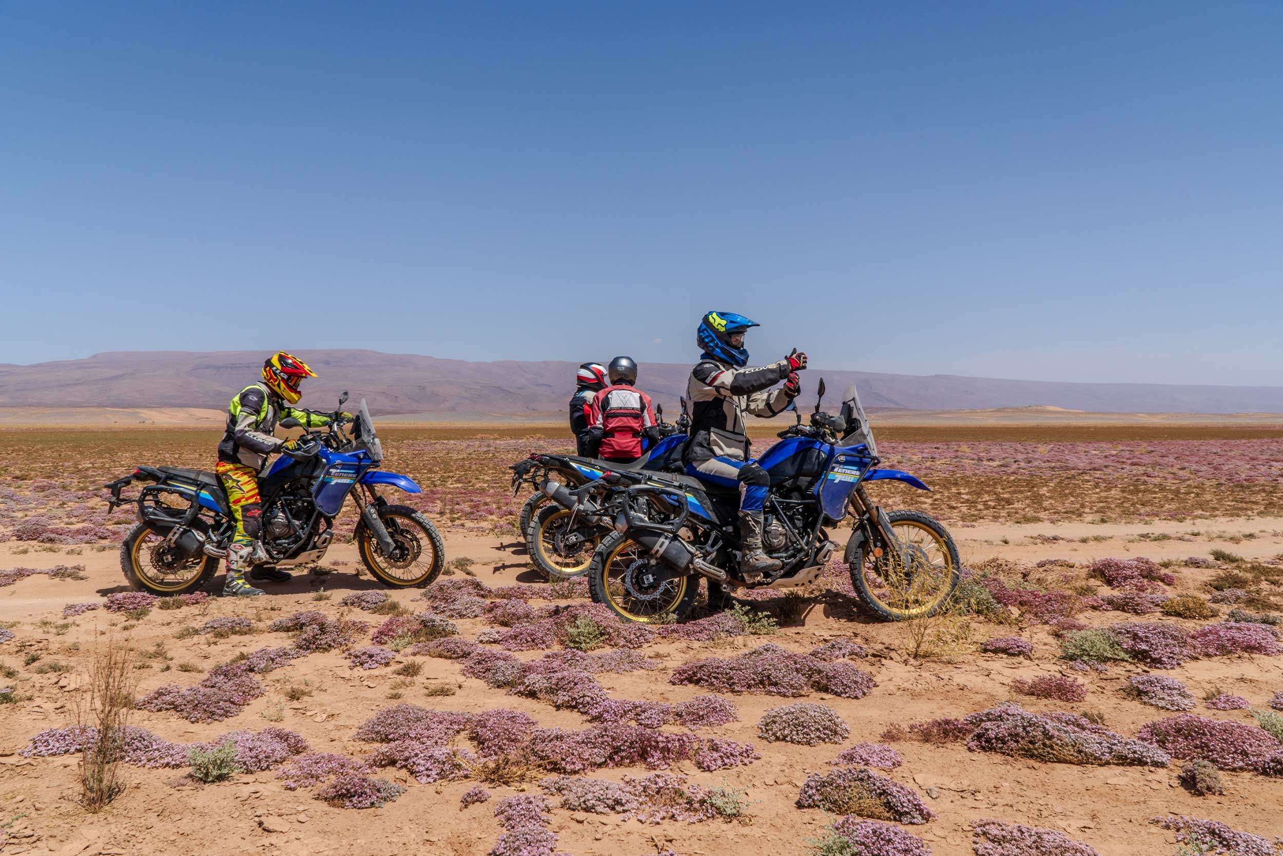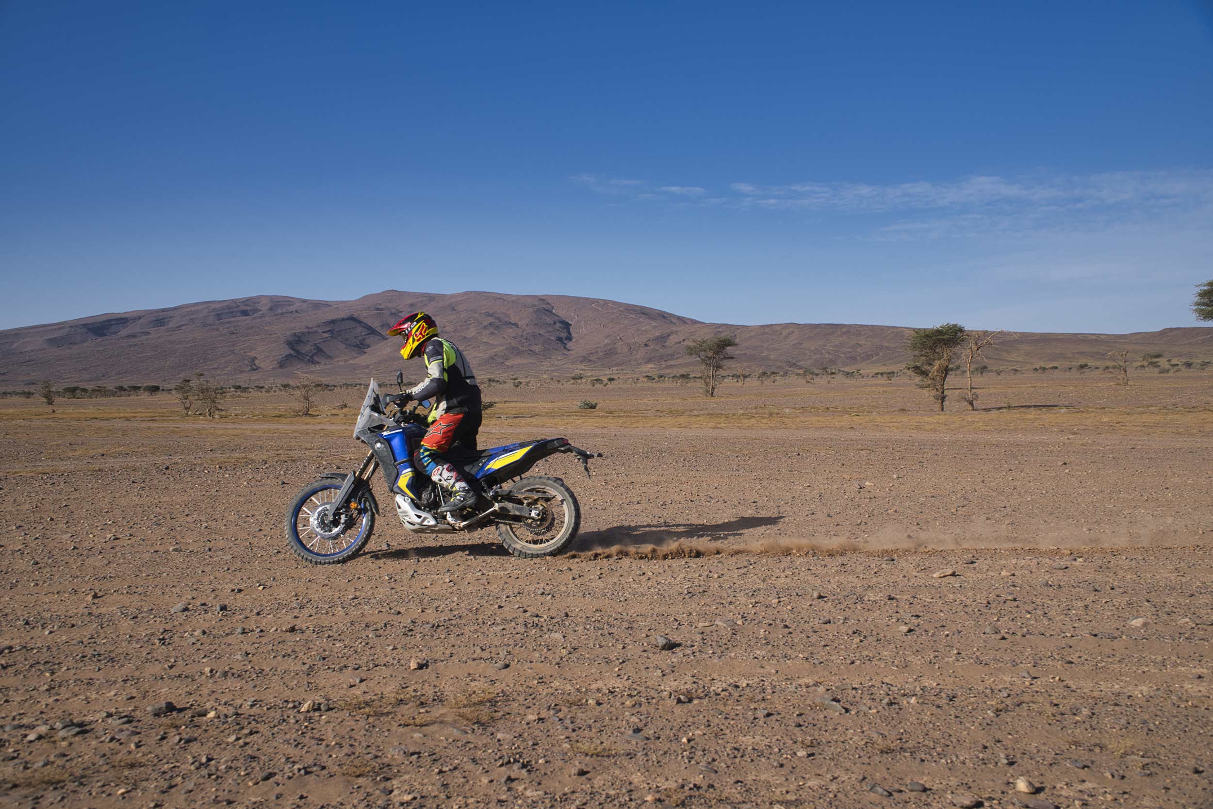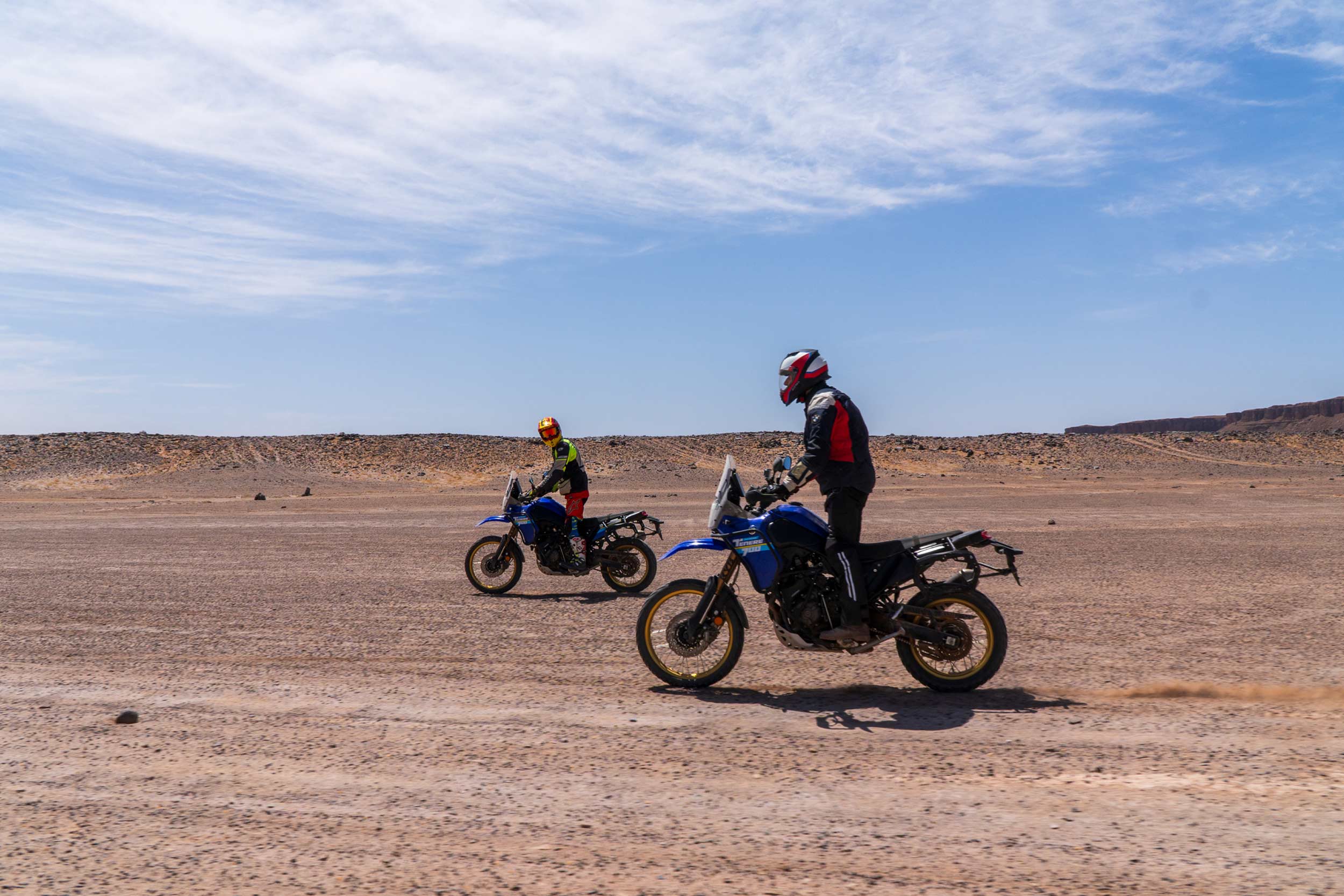 In sella alla Yamaha Ténéré 700 o alla Royal Enfield 450 percepirai la libertà della strada costiera mescolarsi all’adrenalina pura delle montagne dell’Anti-Atlante, mentre il vento accarezza il viso e la polvere delle piste sterrate racconta l’anima selvatica di questa terra.